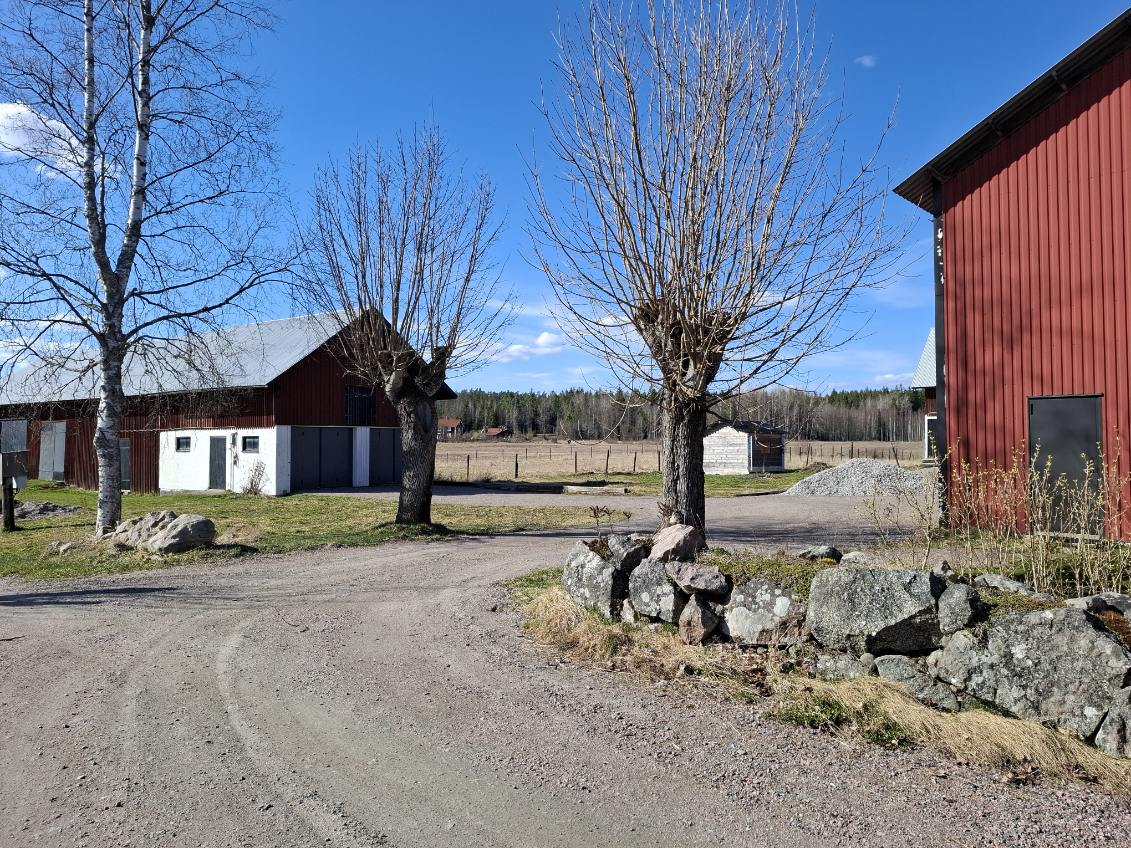 På fastigheten finns även en stor lada, garage och stall med 3 hästboxar med loge samt ett före detta sädesmagasin och en jordkällare. Härliga beteshagar där djuren kan beta fritt. Möjligheter finns även att ha hästar på lösdrift.