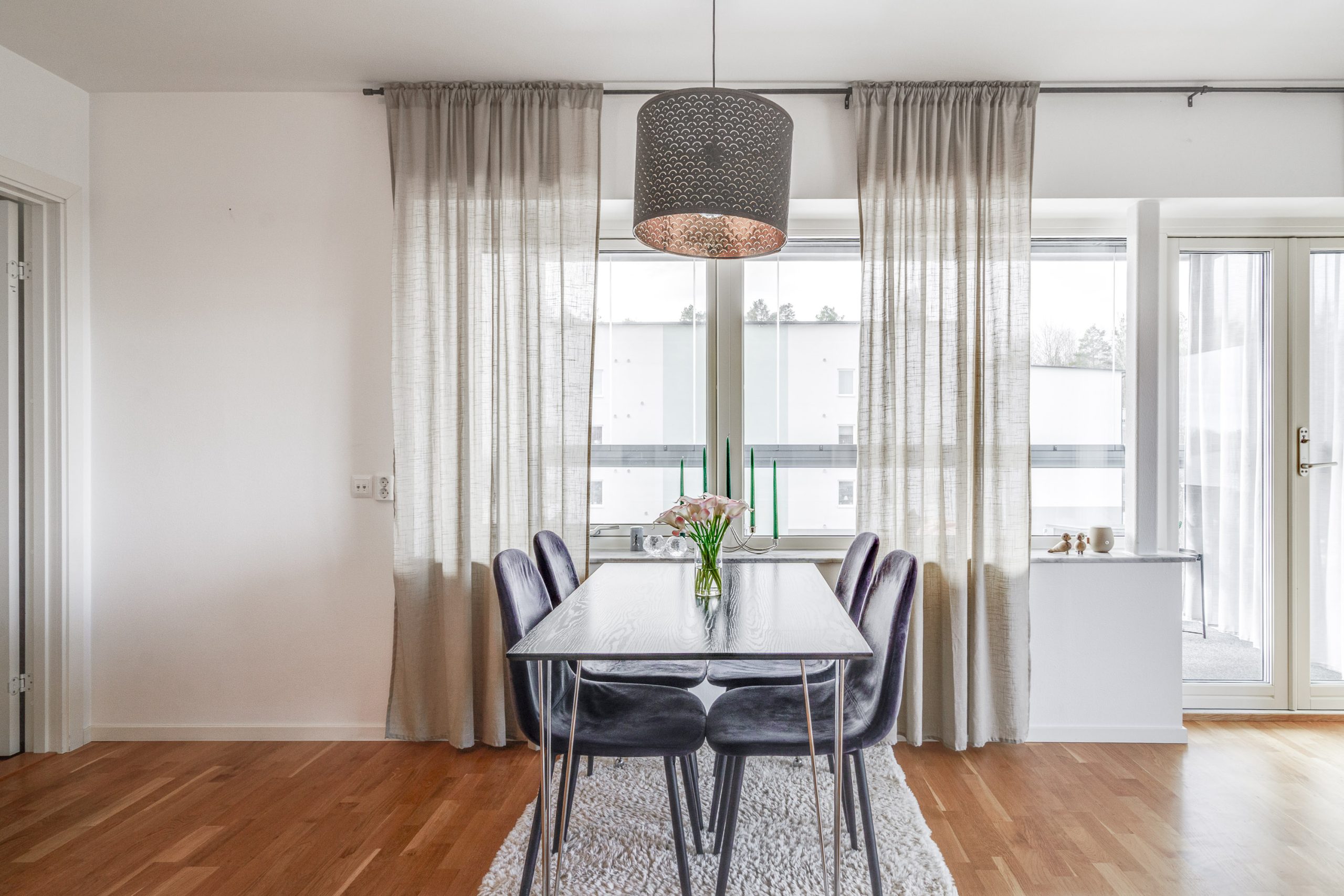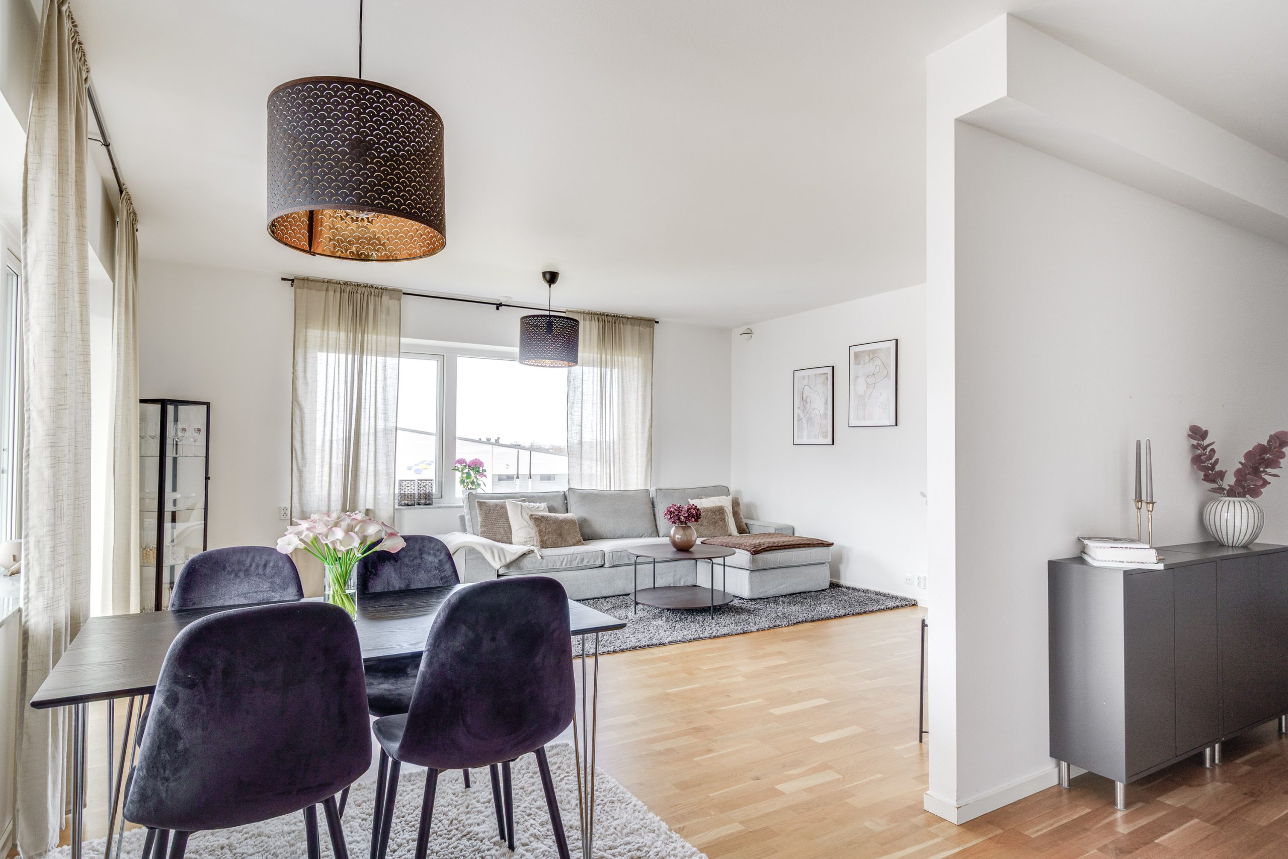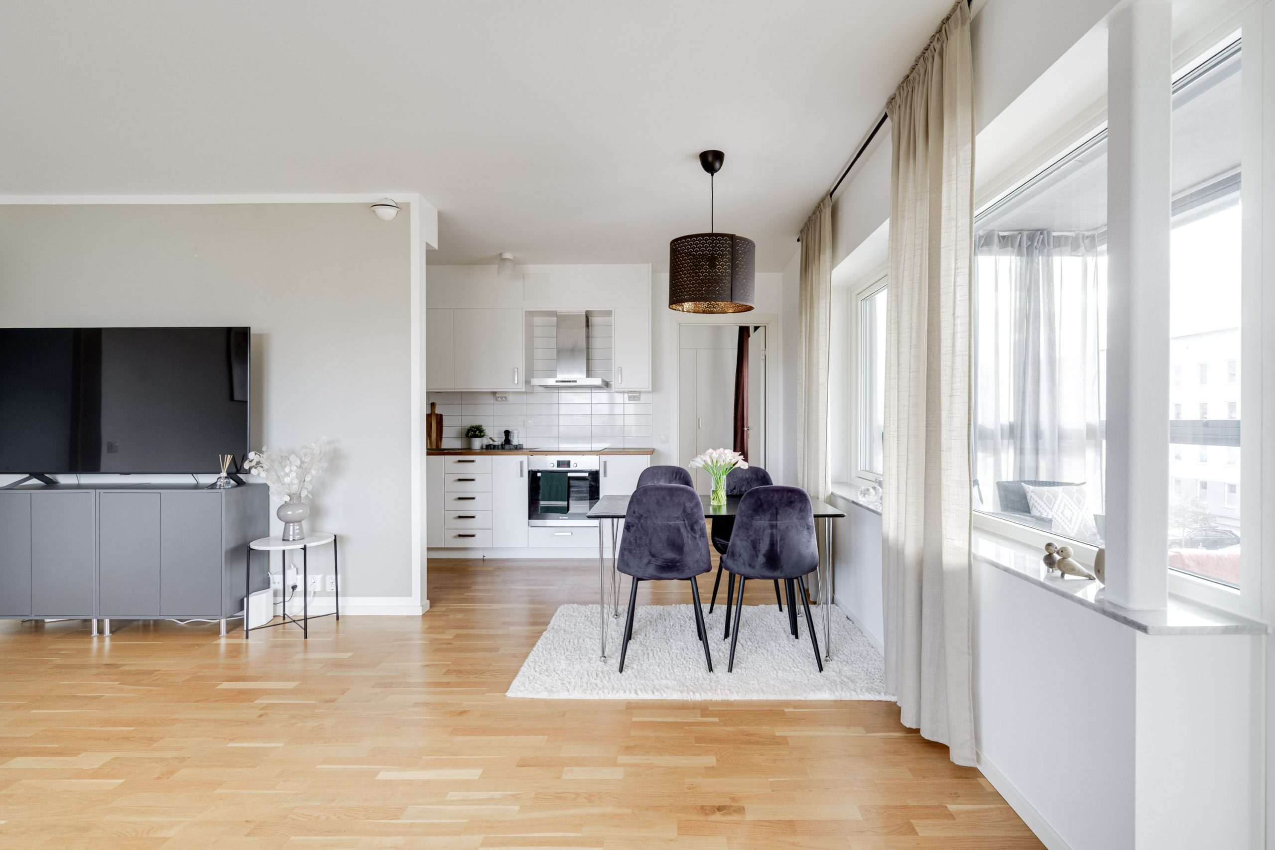 Bostadsrätten har ett optimalt läge med en trevlig, social och delvis öppen planlösning med genomgående parkettgolv, ljusa ytskikt och ett underbart ljusinsläpp från stora fönsterpartier.