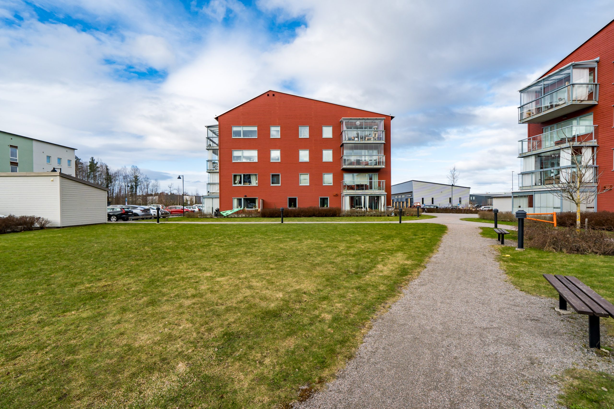 Föreningen har parkeringsplatser att hyra med motorvärmare och utan motorvärmare (separat kö). Innergård med lekplats.